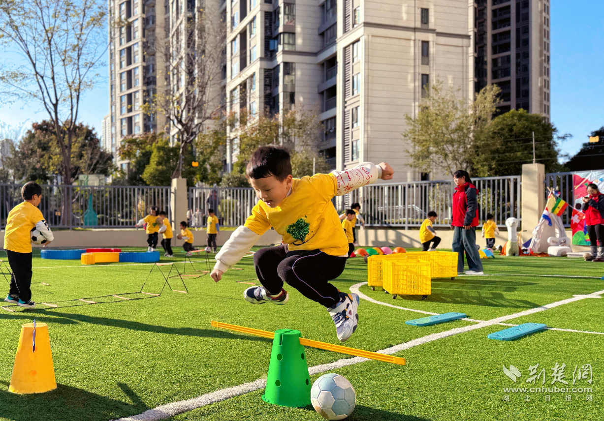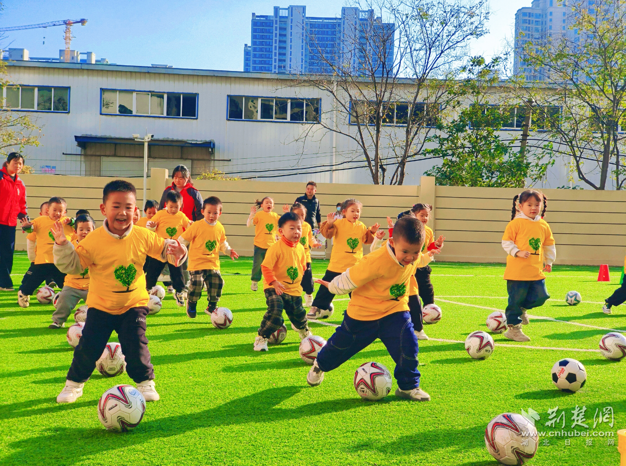荆楚网(湖北日报网)讯(记者齐一璇 通讯员余婷)小足球带着欢笑滚过草坪。近日,武汉市江岸区珞珈山街幼儿园三园区同步开启“绿茵童趣 快乐‘足’梦”亲子运动会。各园区立足对足球教育的独特理解,将日常培育的巧思化作赛场惊喜,让茵茵草坪成为孩子们释放童真、飞扬活力的欢乐舞台。