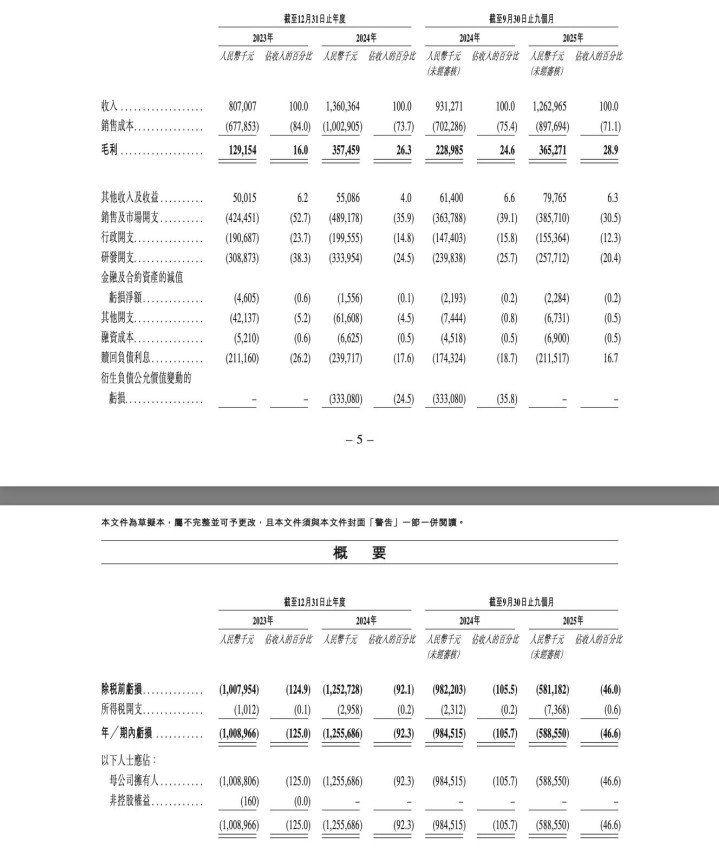 报告期内,海柔创新的收入分别约8.07亿、13.60亿、12.63亿元;毛利分别约1.29亿、3.57亿、3.65亿元,毛利率分别为16.0%、26.3%、28.9%;净亏损分别约10.09亿、12.56亿、5.89亿元,累计亏损约28.53亿元。