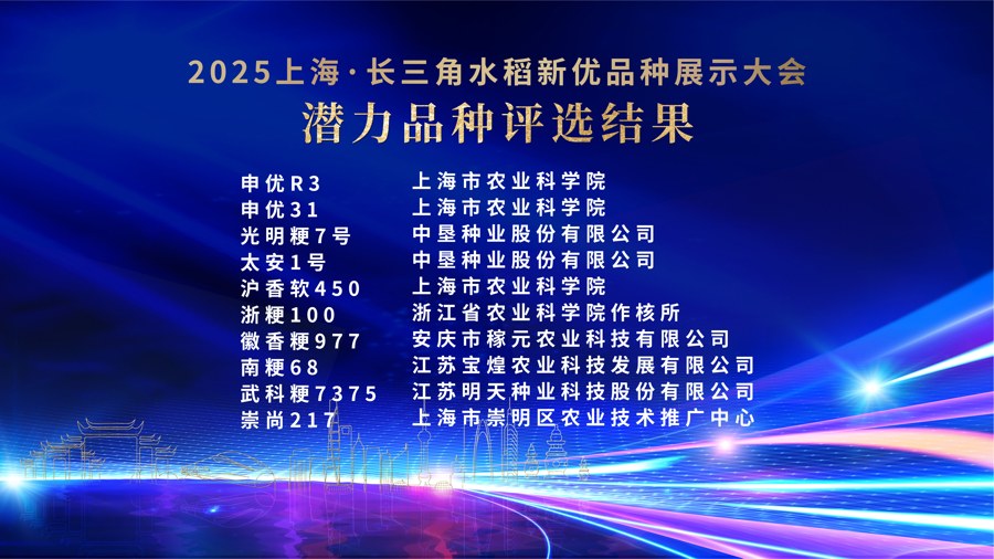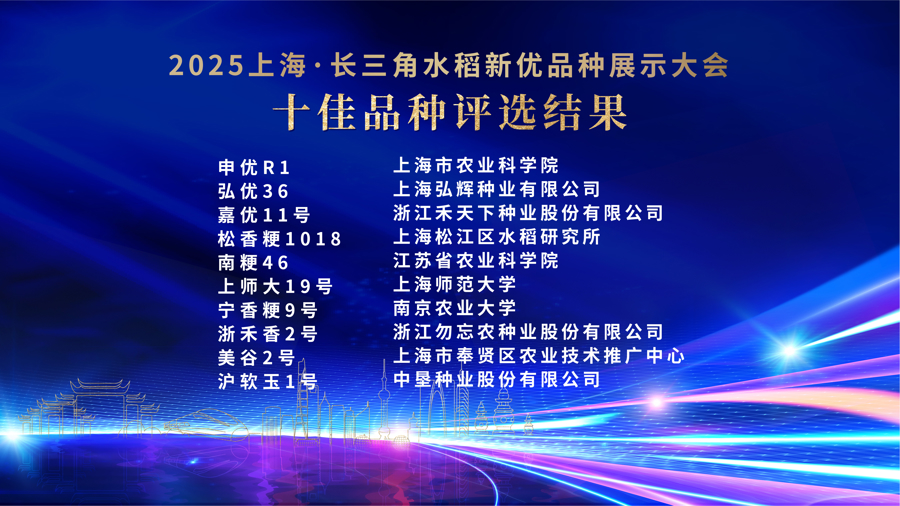 种子是农业的“芯片”,新优品种是水稻产业高质量发展的核心驱动力。本次活动在上海市农作物新品种试验示范基地集中展示了来自长三角地区近40家科研单位选送的115个水稻新优品种,包括优质高产水稻、杂交水稻、中熟水稻、糯稻、氮高效品种及特色水稻六大类型。经专家组的田间现场严格考评,结合米质、抗性等审定数据,一批综合性状优良的品种脱颖而出。活动现场, 2025年度长三角水稻新优品种“十佳”及潜力品种名单发布。
