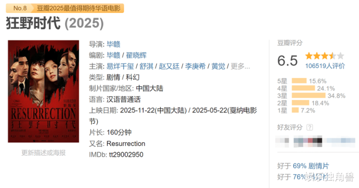 但《狂野时代》上映后,不管是普通观众,还是易烊千玺的粉丝,最多的反馈便是“看不懂”,哪怕是在影迷居多的豆瓣,该片的评分也只有6.5。