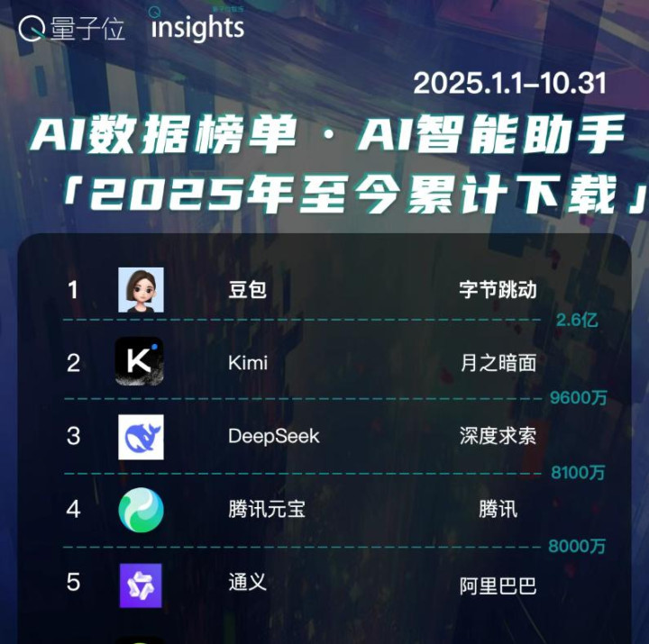 ▲AI智能助手赛道APP产品今年下载情况。图片来自量子位。